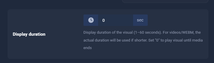 - Allow Display duration = 0 to explicitly disable the timer